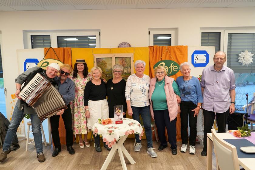 Die Schauspielerinnen und Schauspieler präsentierten ein kurzweiliges Programm aus mehreren Szenen des Alltags: vom turbulenten Einkauf über eine humorvolle Begegnung im Finanzamt bis hin zu hitzigen Diskussionen über Zugluft im Café, einem selbsternannten „Profi“, einem Ehepaar das sich herrlich temperamentvoll über Kleidungskäufe stritt und ein unangenehmes Rendezvous. Trotz der Kürze der einzelnen Szenen überzeugten sie mit pointierten Dialogen und bayerischem Humor. Die Gäste der Tagespflege genossen den Auftritt sichtlich – es wurde viel gelacht, geschmunzelt und am Ende begeistert applaudiert.